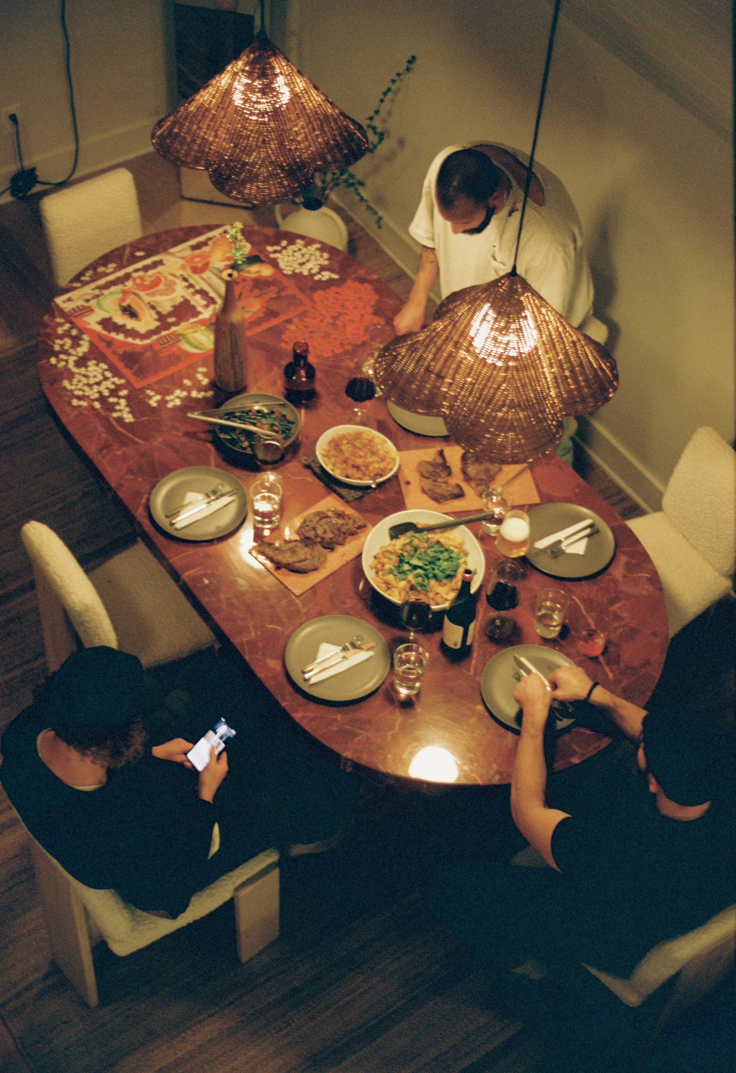 One of my biggest pet peeves when staying in a rental is trying to cook a meal only to realize no one has ever cooked there before and it’s missing key kitchen items. I use Great Jones cookwear (specifically their Precious Metals set + The Dutchess Dutch oven) Graza Olive Oil, as well as vintage serving bowls, and everything you’d need to cook a proper feast. (My family spends Thanksgiving there every year!)